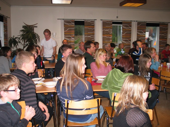 Några av många personer samlade i klubbstugan