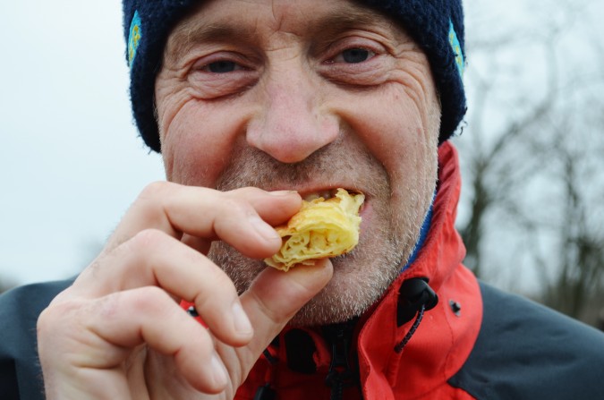 Bakom lucka 1 i julkalendern gömmer sig Jonny. På bilden befinner sig Jonny i Serbien ätandes på en rulle smördegsinbakad köttfärs. Gud vad vi åt de rullarna! Frukost, lunch och middag..